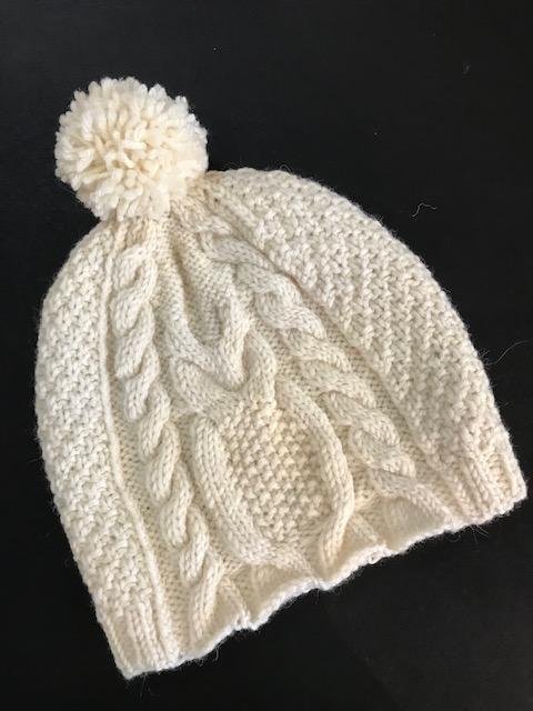 | Skill Details: | Hat is made with several different types of cables and fancy stitches, we will learn about using life lines and reading cable patterns. Pattern is not charted. |